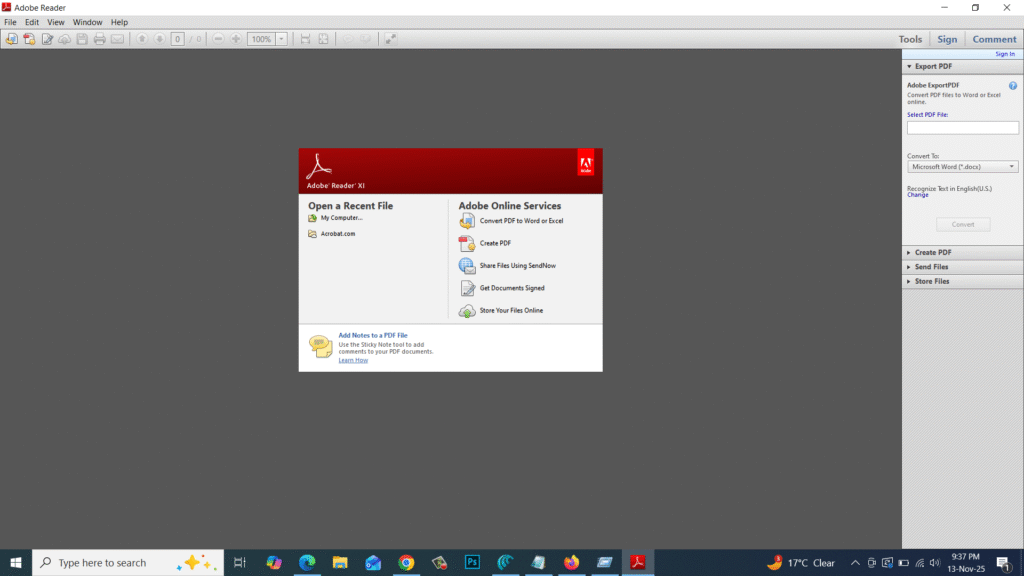 Adobe Reader 11, officially known as Adobe Acrobat Reader XI, is one of the most reliable and popular PDF readers in the world. Developed by Adobe Systems, this version allows users to view, print, annotate, and sign PDF files easily. It is lightweight, fast, and ideal for both personal and professional use.