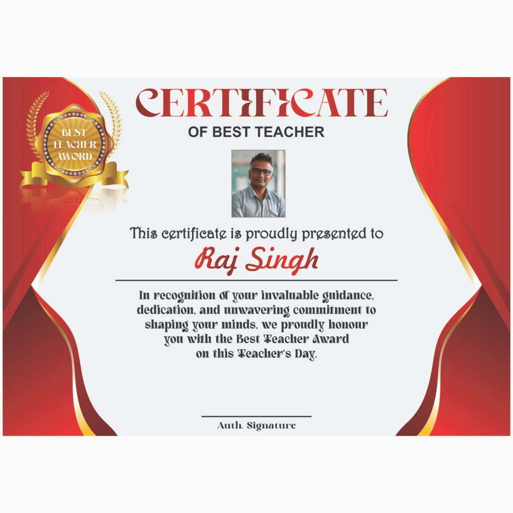 Best Teacher Award Certificate for Teacher’s Day