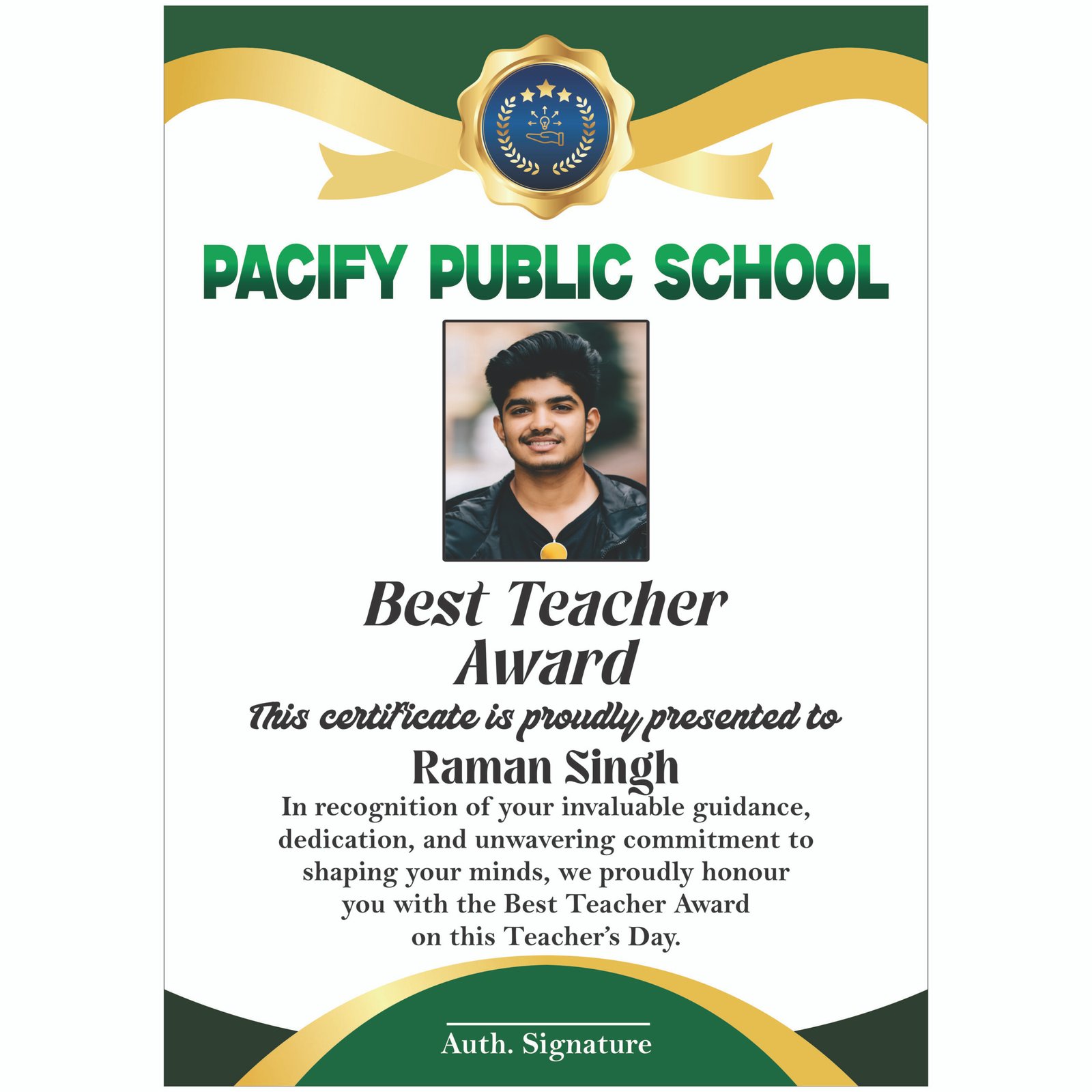 Best Contribution Professional Certificate for Teacher’s Day