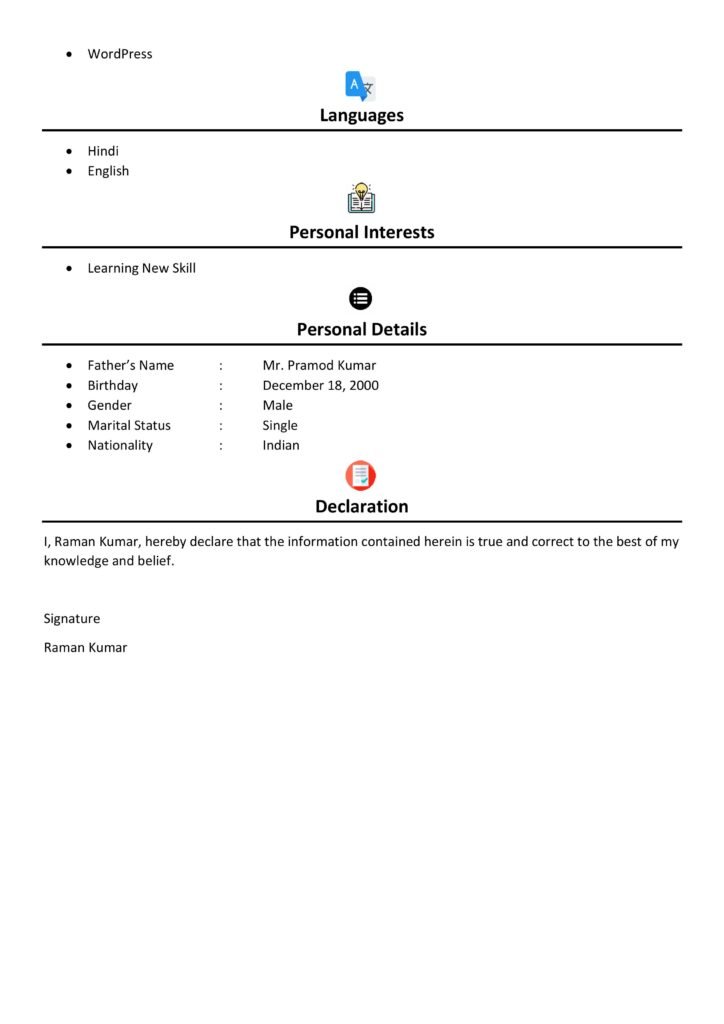 - Simple Resume Format for Freshers