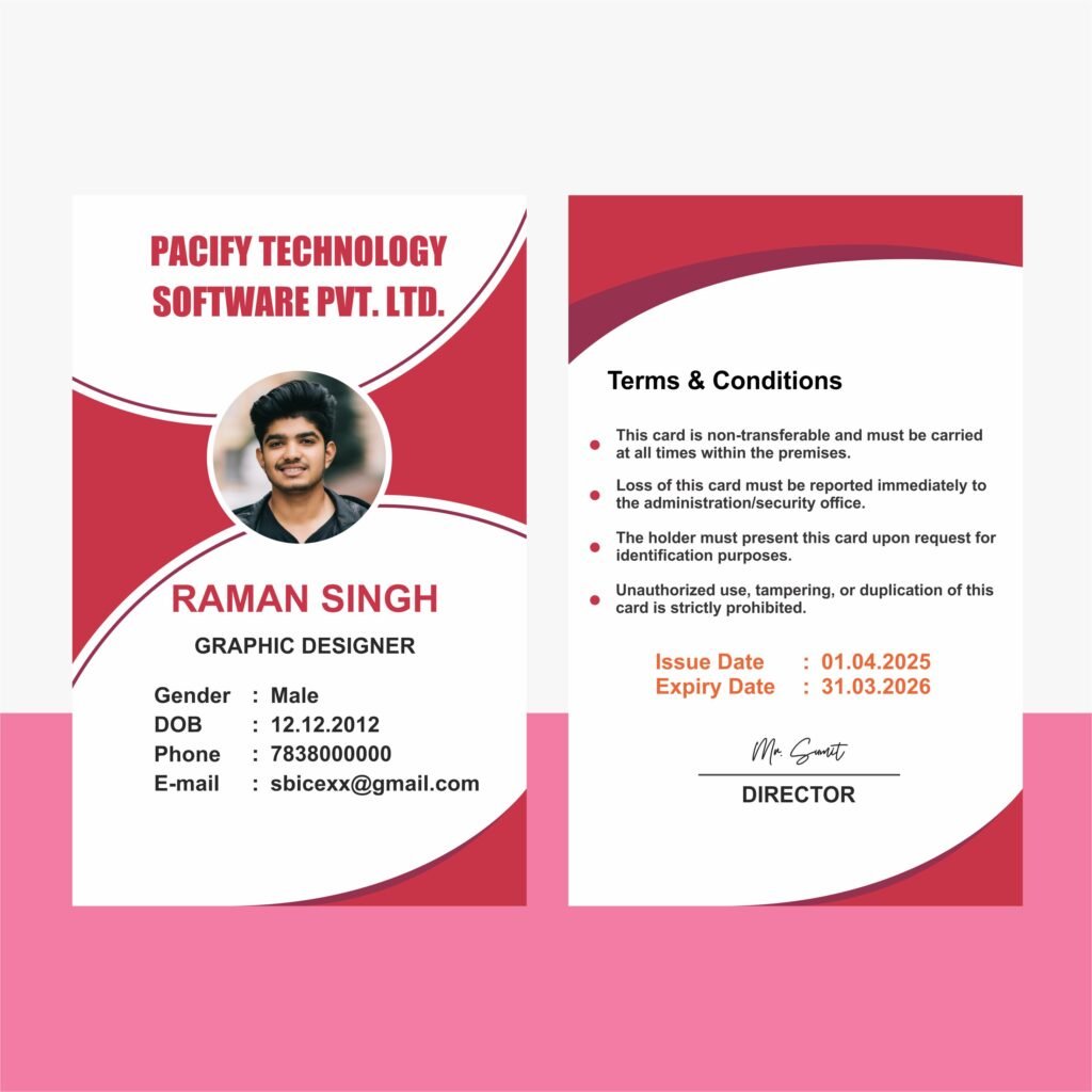 Download Red ID Card Best Design Free CDR Template for Employees from softfiles.in. This modern and professional ID card template is designed in a clean vertical layout, perfect for schools, colleges, universities, coaching institutes, and training centers. Fully editable and print-ready, you can easily customize student details, photo, logo, and colors.